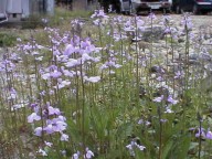 ちょっと前までただにょきにょき生えてるだけで気にもしていなかったのに、上に紫色の花をつけると途端に かわいく思えるから不思議。葉が小さく見通しがきくので、小人になって下から見上げたら面白いだろうなあ。