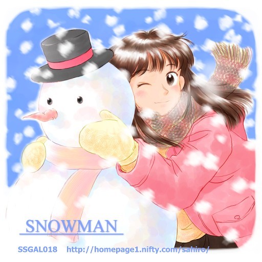 「きゃ〜♪かわい〜!つめた〜い!」 「…そりゃ雪だるまだもん」 クマのぬいぐるみのような、ふかふかの質感を 連想しますが、それは空想の中だけ。雪だるまは 硬くて冷たいです(^^; あ〜降っている雪まで、綿のように(^^;