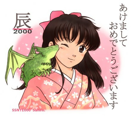 年賀2000 [振り袖少女半身] (1999.12.31)